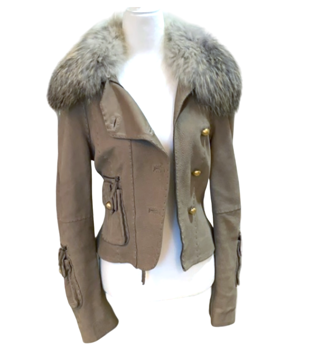 Jaqueta feminina Fendi italiana original de couro com gola em pelo natural lindos botoes dourados personalizados, sendo a gola removivel podendo usar a jaqueta sem a gola ,gentilmente usada e muito conservada sem detalhes, numeração para o Brasil veste 36/38 .