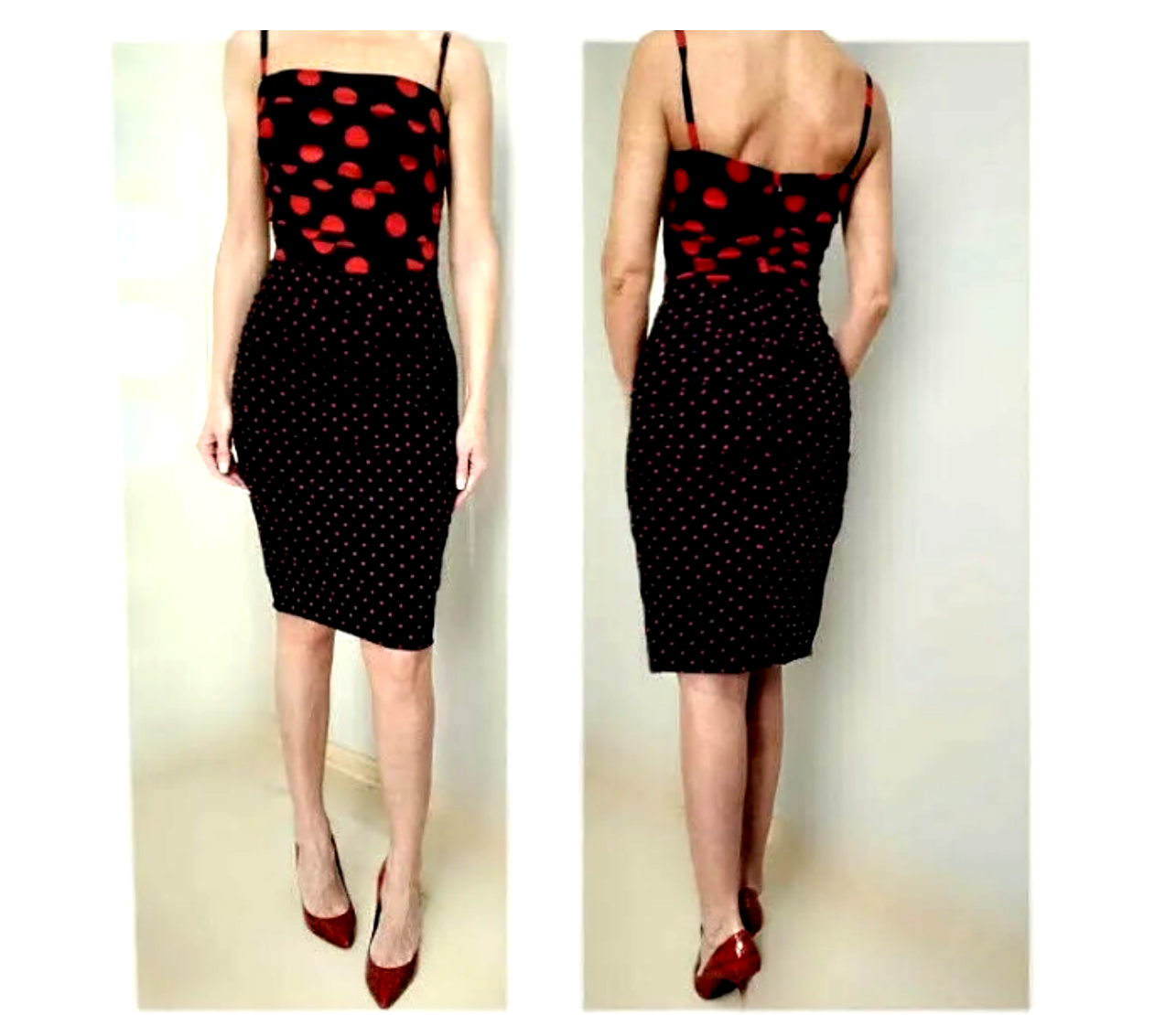 Vestido com alçinha drapeado preto e poa vermelho 94% seda 6% elastano marca Dolce&Gabbana original todo forrado com as seguintes medidas, 70cm comprimento , 72cm quadril e busto 60cm numeração Brail 34/36